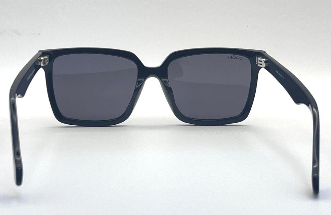نظارات شمسية مربعة عصرية بإطار أسود أنيق وعدسات داكنة، توفر حماية أنيقة من أشعة الشمس وراحة طوال اليوم. مثالية للاستخدام اليومي.