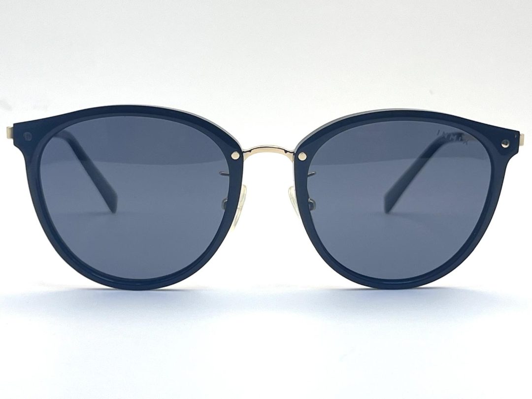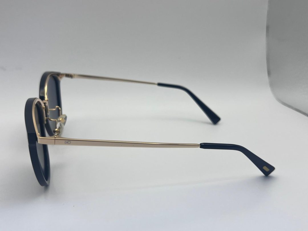 The frame is black acetate with gold metal accents for the bridge and part of the temples . polarized lenses